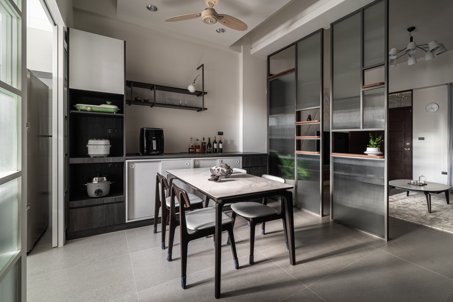 選用陶板餐桌搭配質感餐椅,