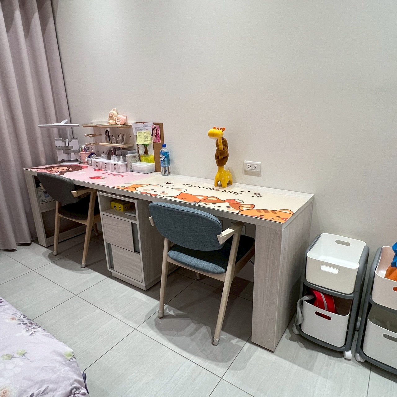 後來改為雙人長書桌,讓家教老師也能共同使用。