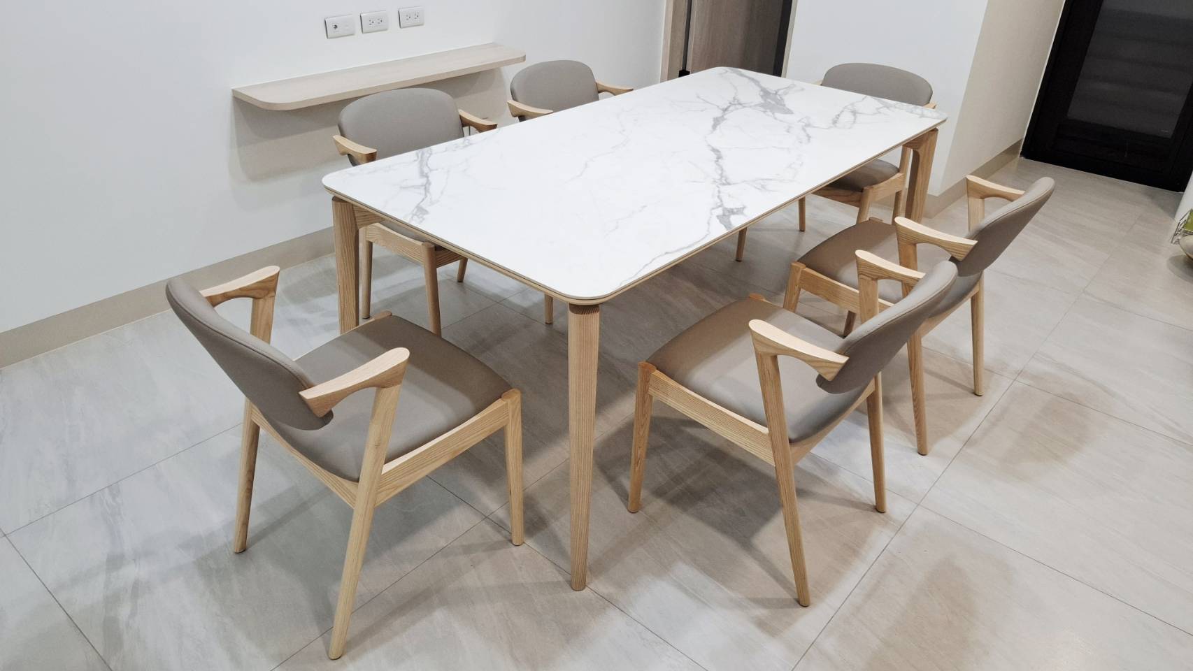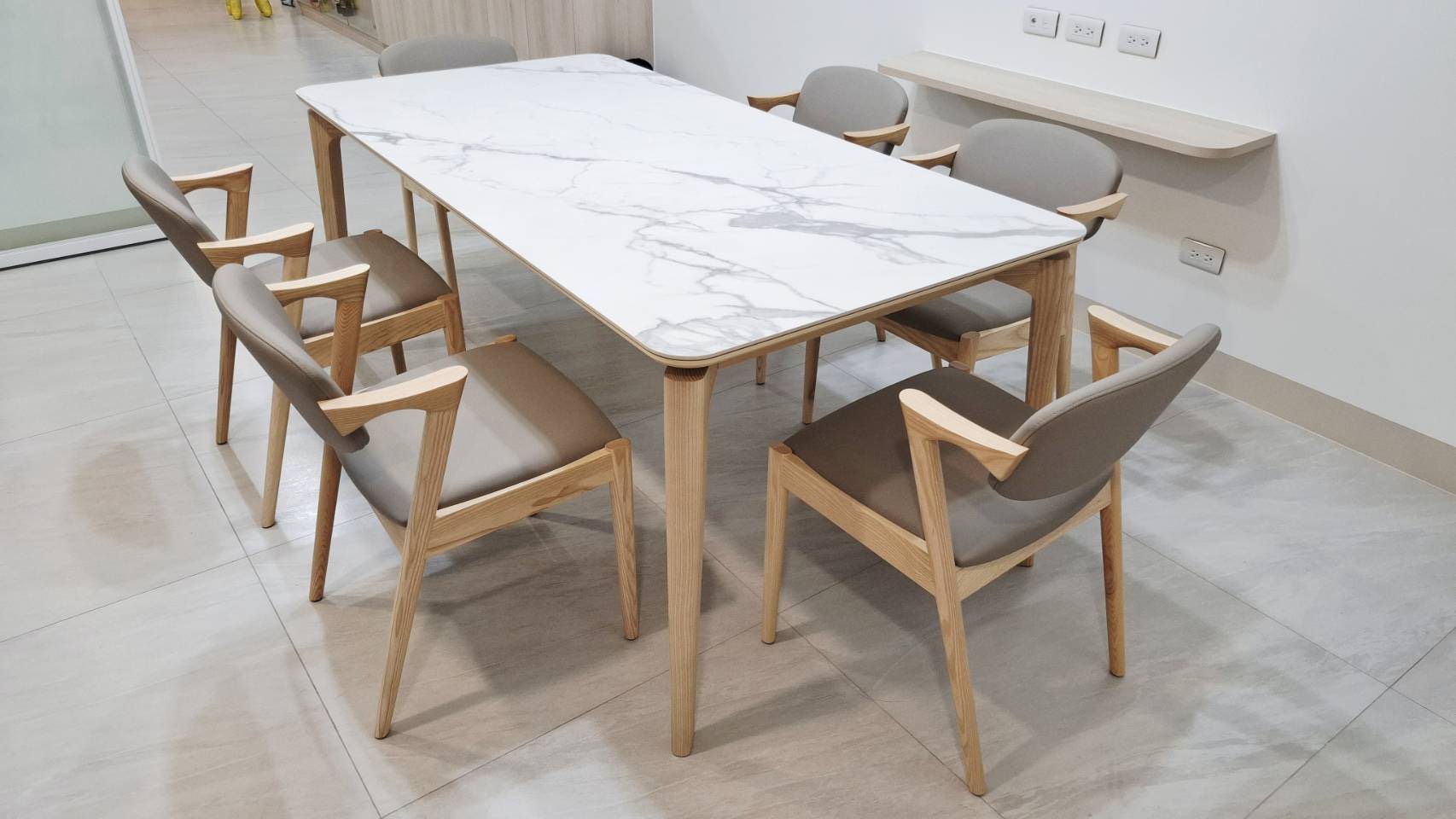 餐廳空間配置:實木椅與陶板桌的溫暖平衡