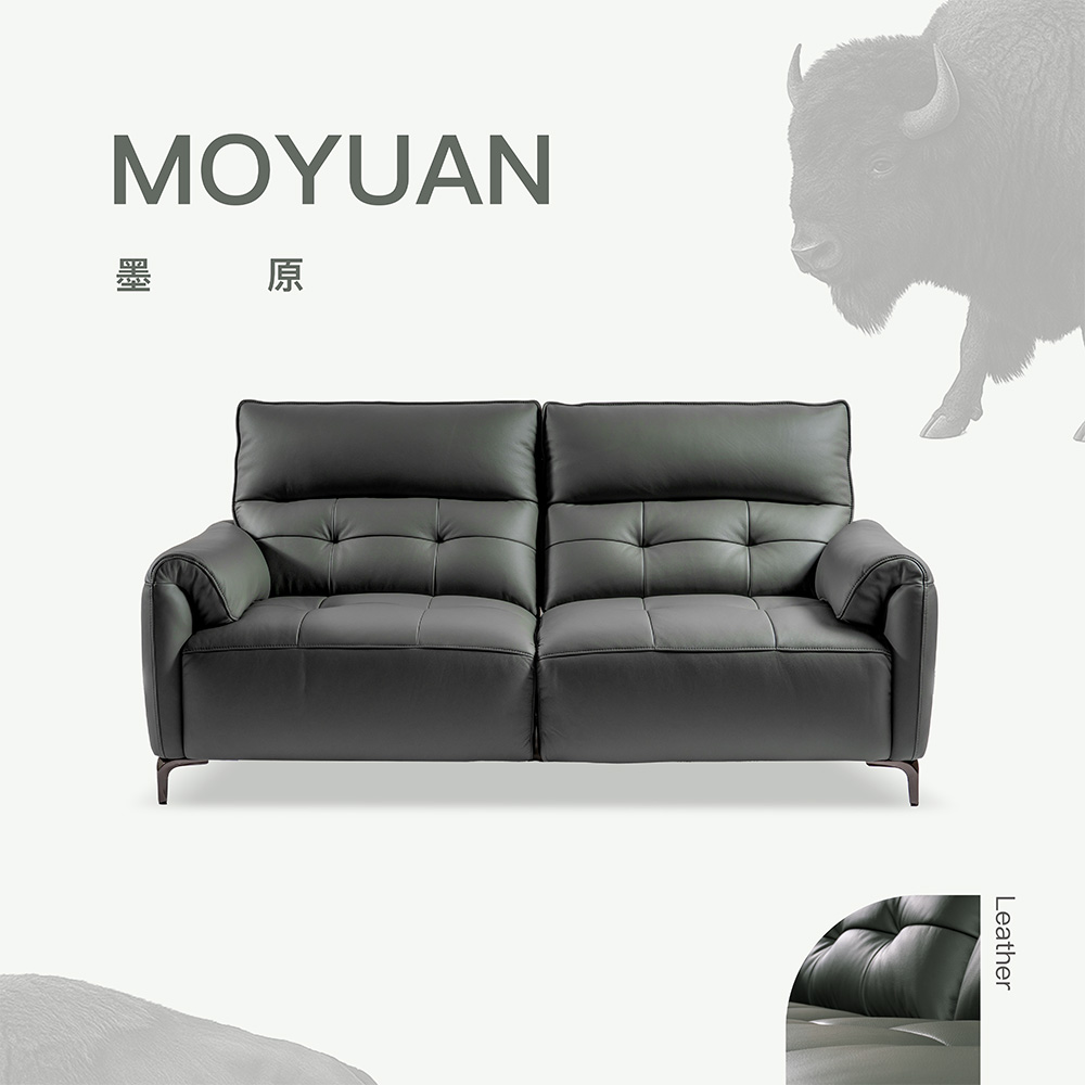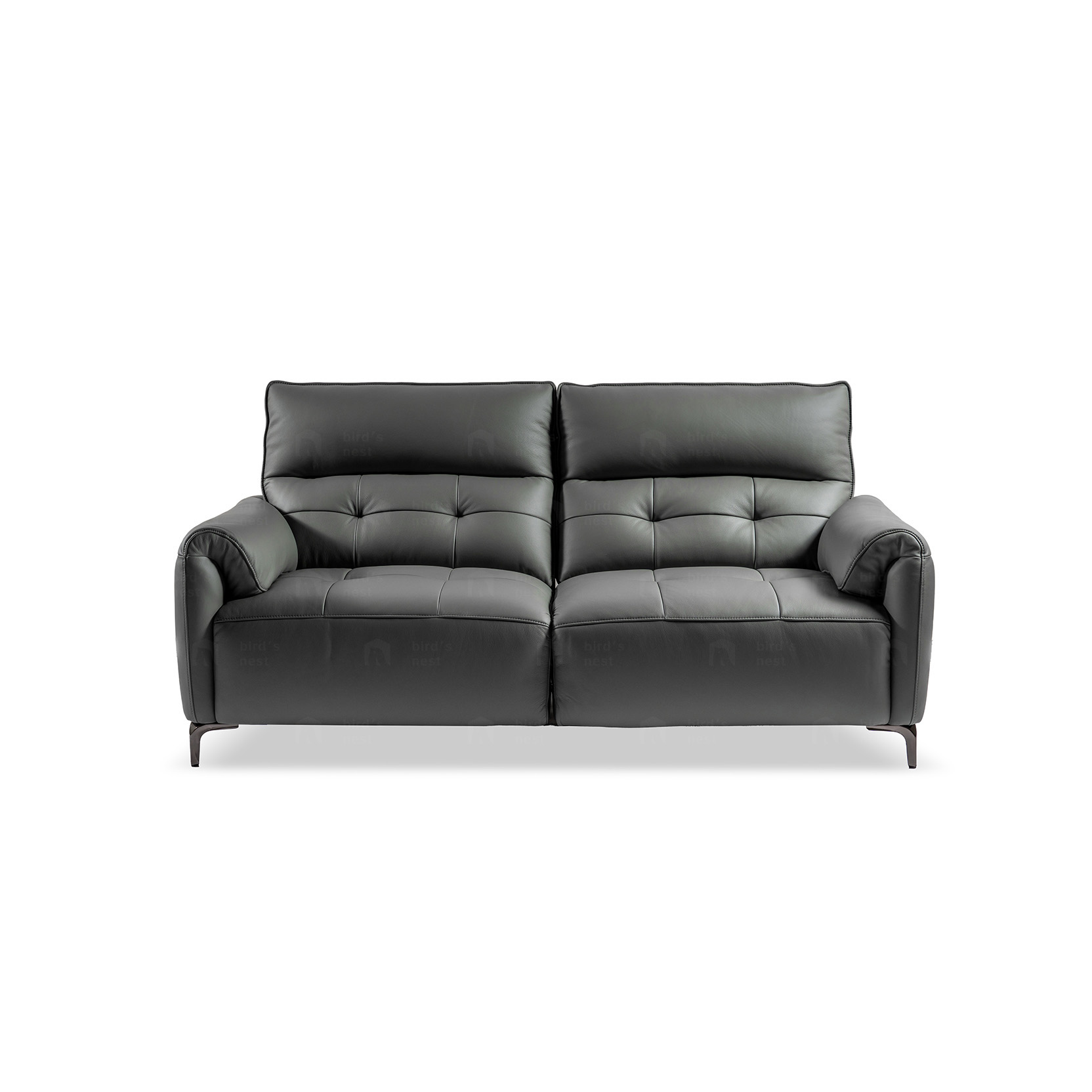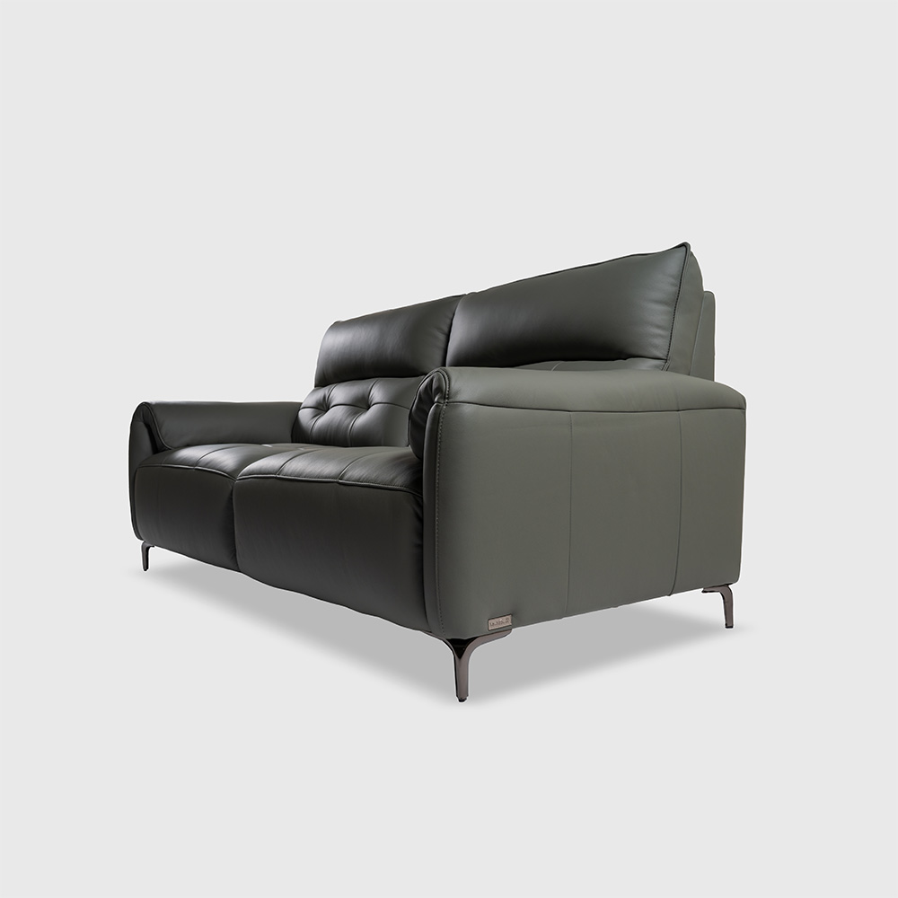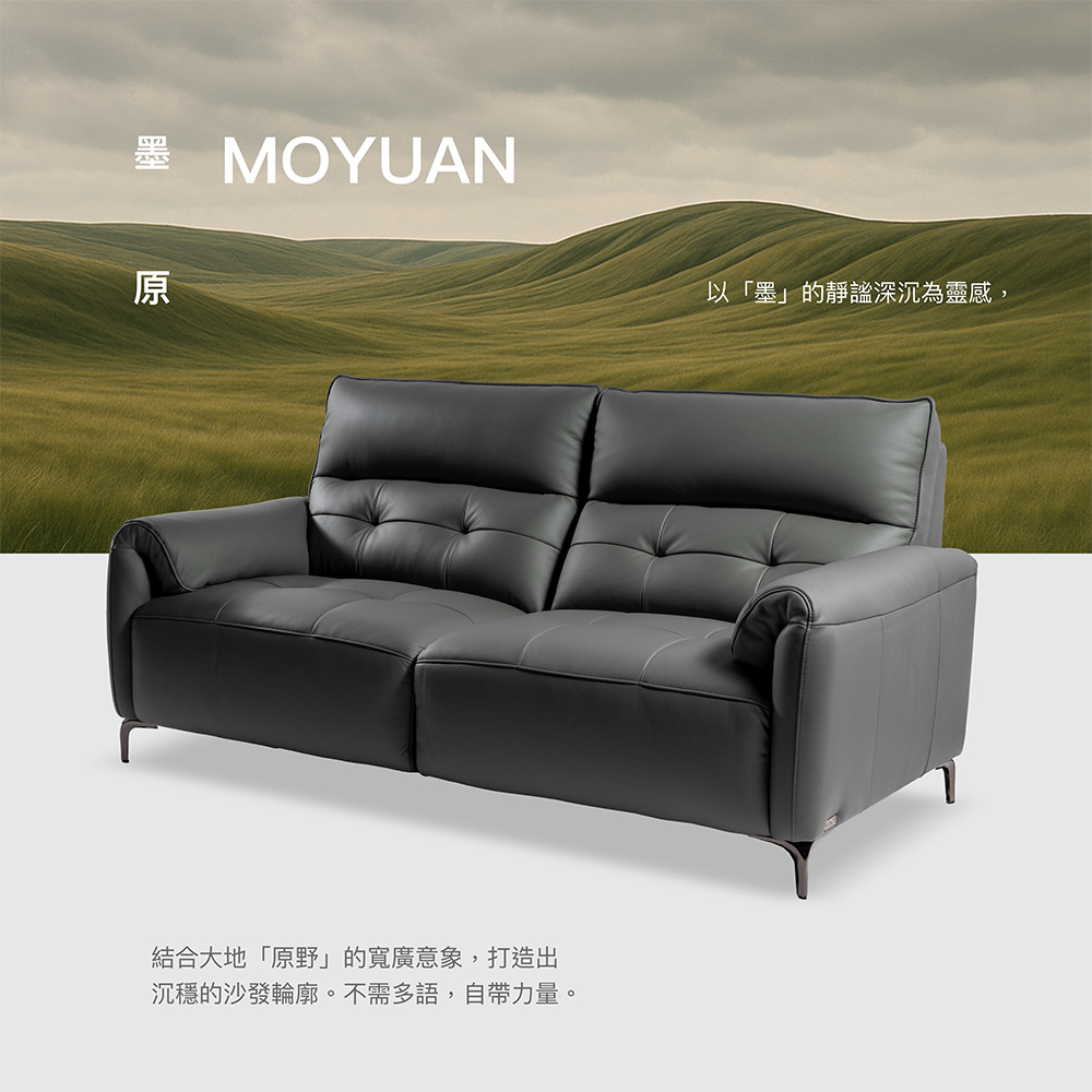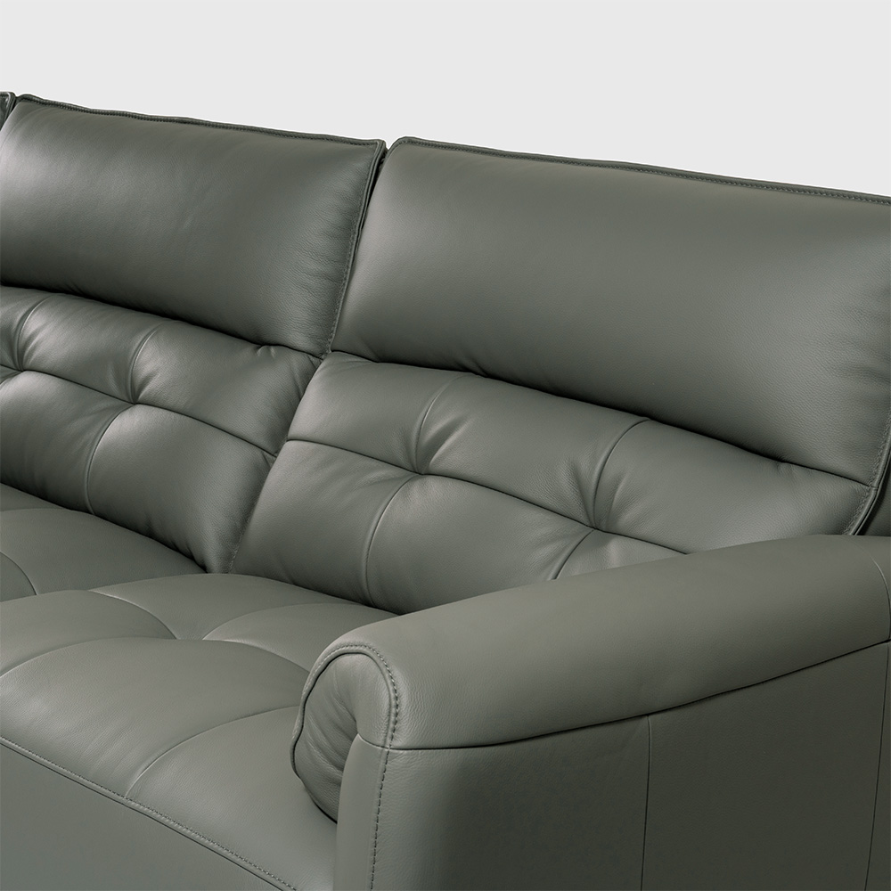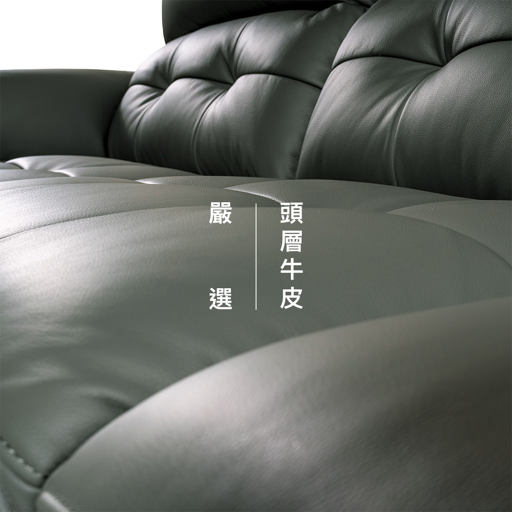 尺寸: 寬196* 深98* 高98 cm 外型:外觀低調厚實,線條俐落沉穩,展現安靜而堅毅的氣場。 材質:全牛皮面料,質感沉穩;內部以高彈力釋壓棉結合美國 LVL 多層板,確保持久彈性與支撐力。 坐感:椅墊承托感明顯,軟硬適中,靠背穩固,適合偏好包覆性兼具支撐性的人。